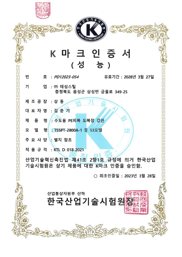 K마크 인증서