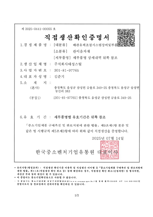 직접생산확인증명서