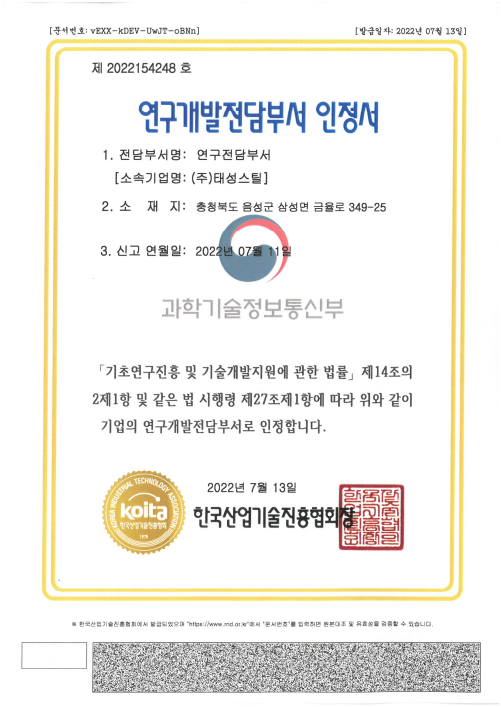 KS 제품인증서